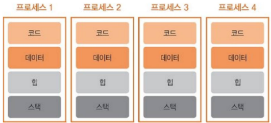 | 통신 방법 | 소켓, 메시지 큐, 파이프 | 공유되는 메모리 공간 (ex. 전역변수) |