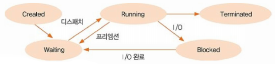 - Created : 막 생성해서 실행 준비를 하는 단계, 실행 중인 프로세스와 우선순위를 비교